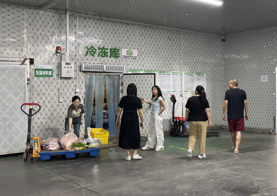 校领导一行首先来到公司的核心区域——品质管控与保鲜区。在永润食品总经理刘洋的陪同下,详细介绍了公司发展理念及目标、食品安全管理体系等重点方向及工作,从生鲜食品原材料入库、分拣到包装的全流程操作进行了详细的讲解;校领导组对分拣到配送的标准化流程表示赞赏并给予了高度的评价。