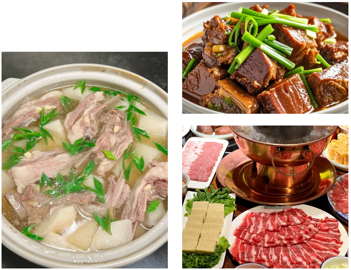 -羊肉萝卜汤:经典搭配。白萝卜能润燥生津,其凉性可中和羊肉的燥热,补而不腻。