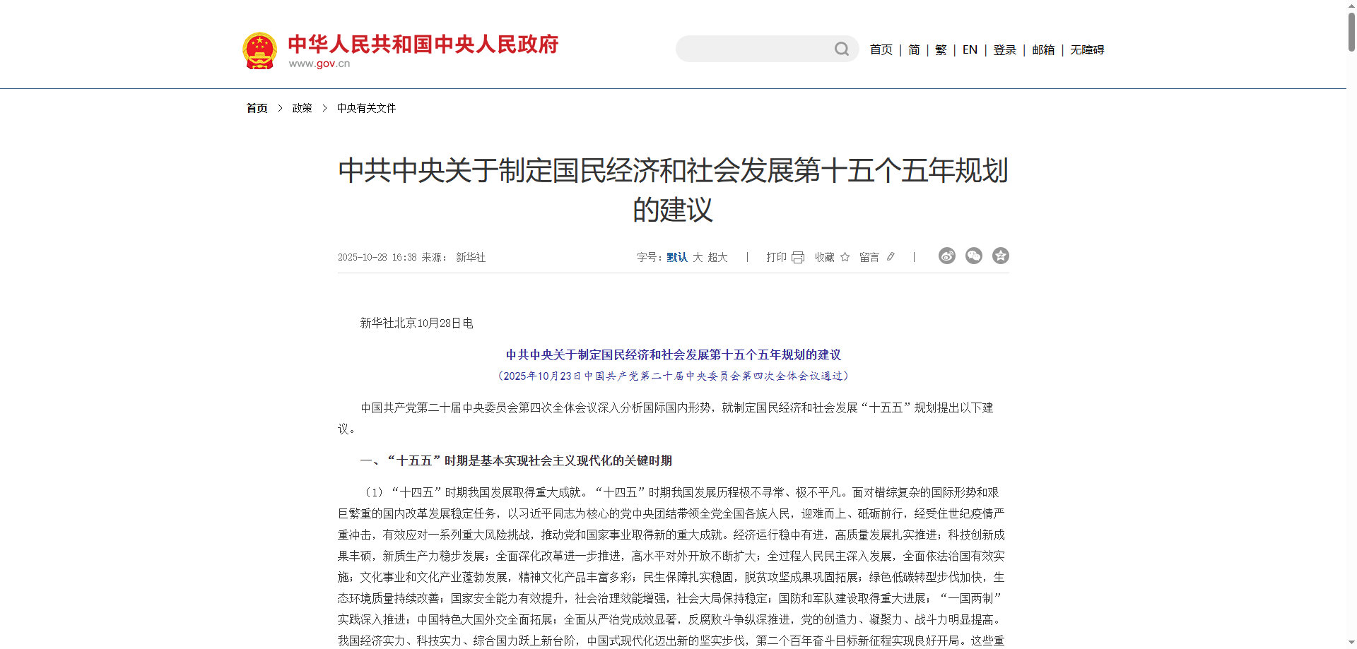 近日,《中共中央关于制定国民经济和社会发展第十五个五年规划的建议》正式发布,全文15个部分、61条,分三大板块布局。关于农产品行业提出明确发展重点,加快农业农村现代化,扎实推进乡村全面振兴。