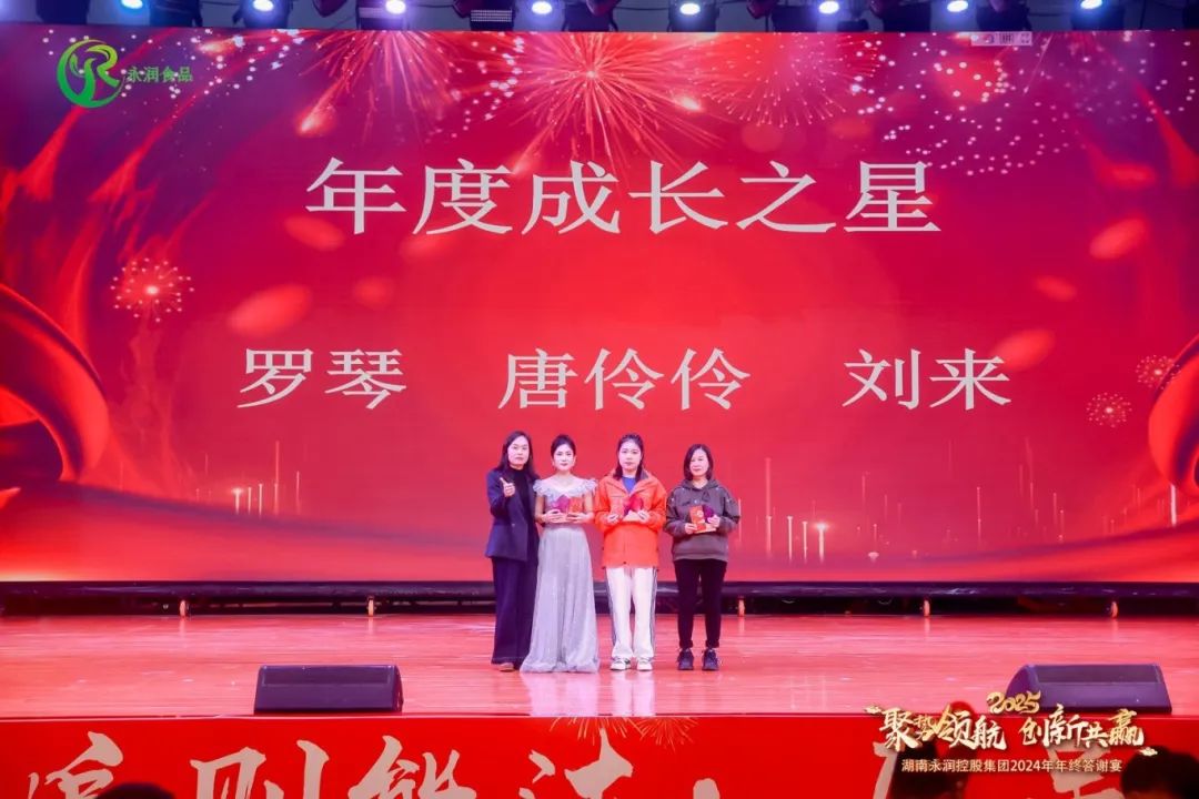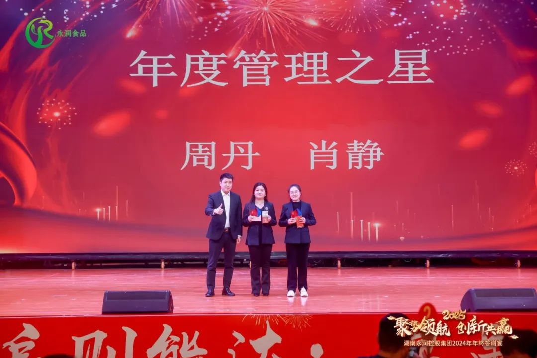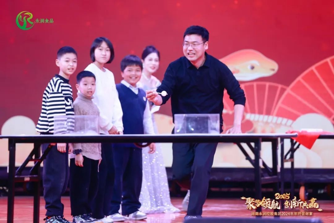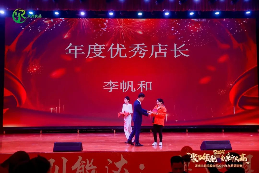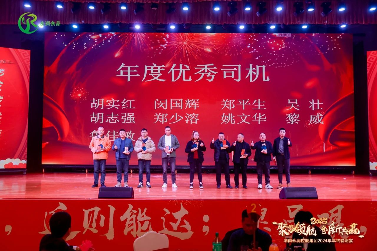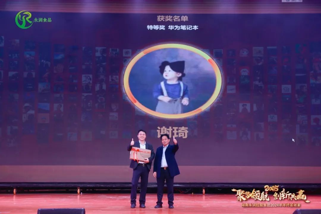 年会在欢快声中拉开帷幕。首先集团董事长段祖柏在宴会上向到场的所有嘉宾及人员表示感谢,同时对2024年做了回顾以及对2025年提出了新的希望和要求。其次集团总经理刘洋就过去一年集团的工作业绩进行了年终汇报,她分享2024年的关键词是“稳中求进,实属不易”。在业绩上实现了稳步小幅增长,成功新增了教育系统板块。在公司内部管理方面,进行了从精细化管理到合规化数字化管理的改革。对于员工不再是简单的管理者与被管理者的关系,而是共同成长的伙伴。对于供应商也不再是简单的采买关系,而是协同合作的伙伴。2024年公司与长沙县政府签约了永润数字农业融合发展基地。这一项目的落地,标志着我们在产业融合和创新发展方面迈出了坚实的一步。它不仅将为公司带来更广阔的发展空间,也将推动整个食品行业的数字化转型和产业升级。