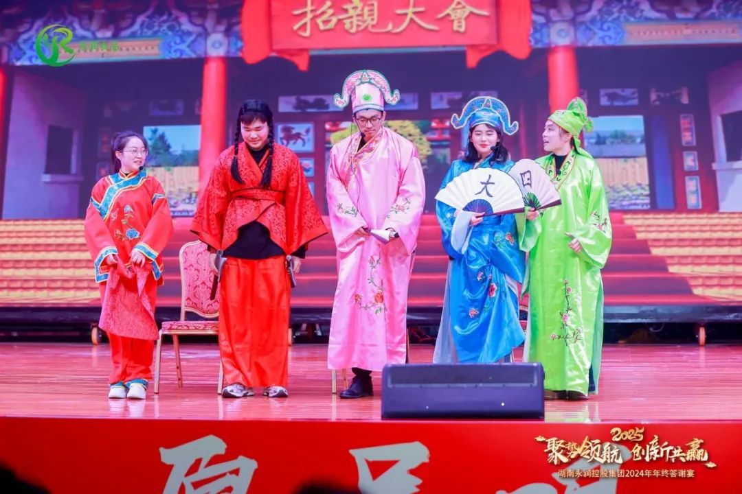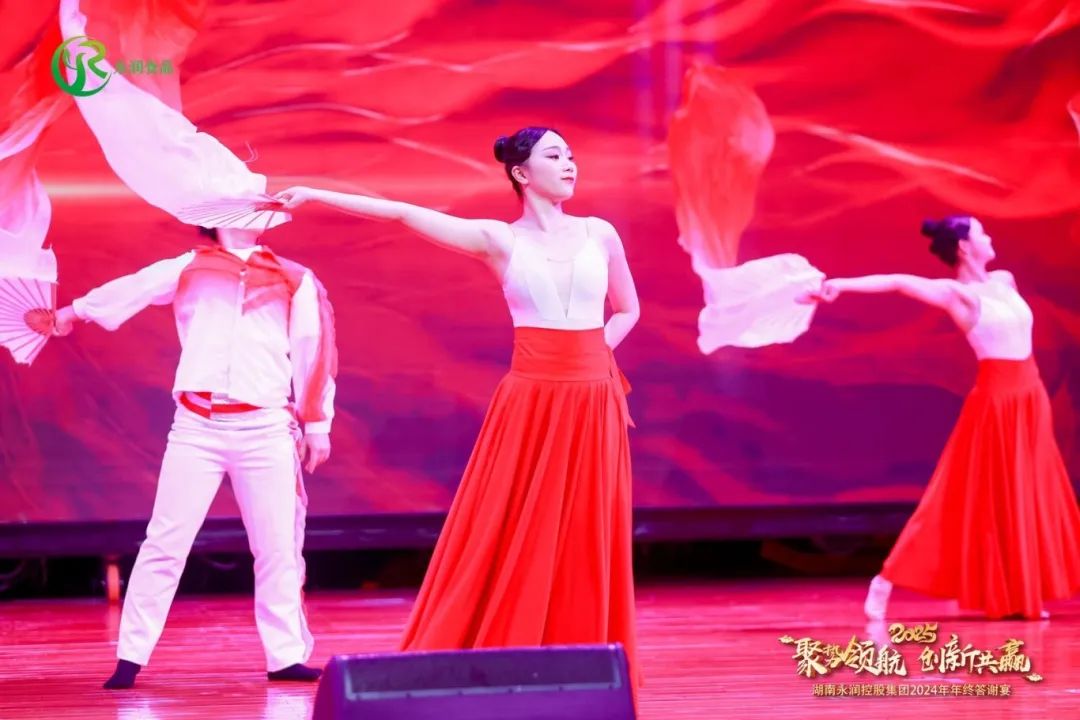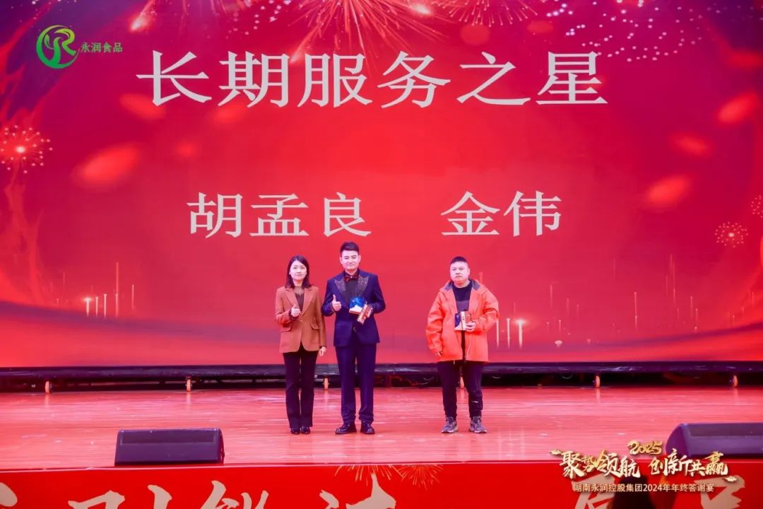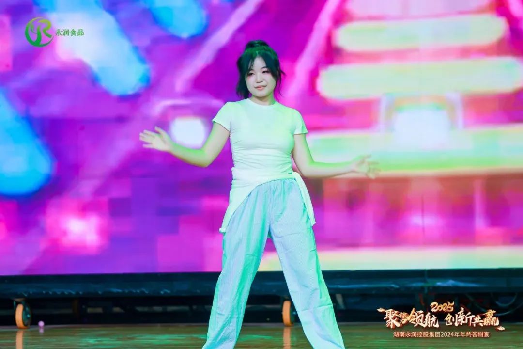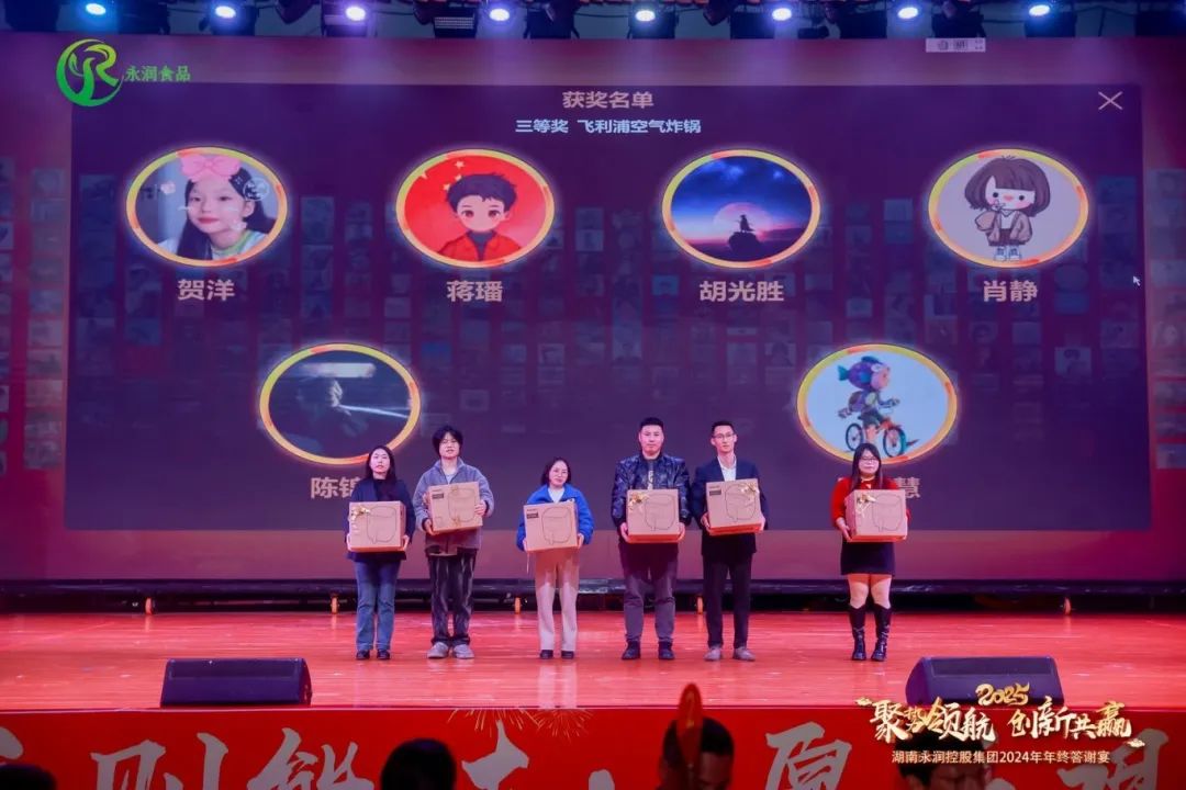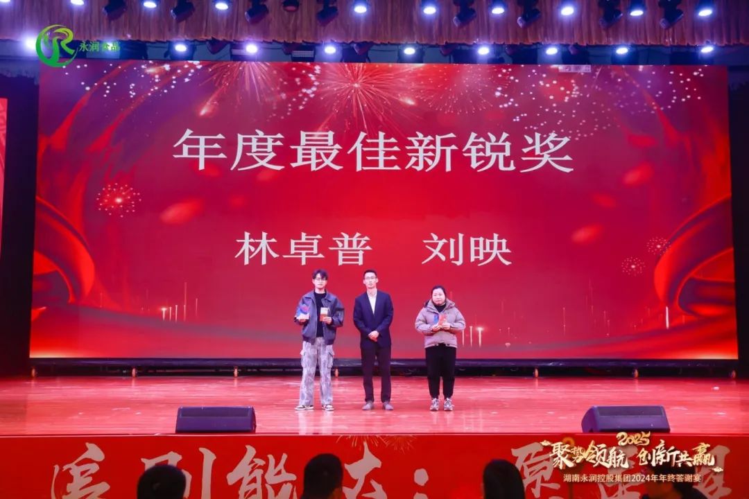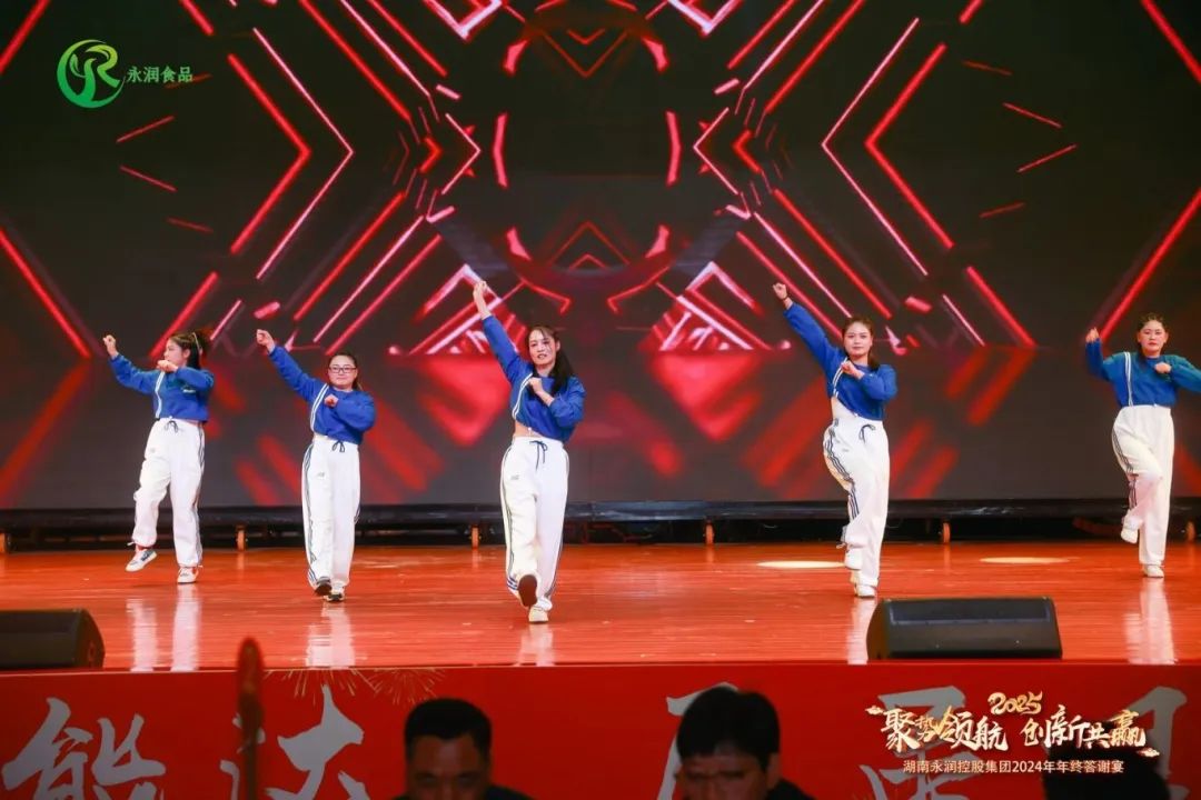 年会在欢快声中拉开帷幕。首先集团董事长段祖柏在宴会上向到场的所有嘉宾及人员表示感谢,同时对2024年做了回顾以及对2025年提出了新的希望和要求。其次集团总经理刘洋就过去一年集团的工作业绩进行了年终汇报,她分享2024年的关键词是“稳中求进,实属不易”。在业绩上实现了稳步小幅增长,成功新增了教育系统板块。在公司内部管理方面,进行了从精细化管理到合规化数字化管理的改革。对于员工不再是简单的管理者与被管理者的关系,而是共同成长的伙伴。对于供应商也不再是简单的采买关系,而是协同合作的伙伴。2024年公司与长沙县政府签约了永润数字农业融合发展基地。这一项目的落地,标志着我们在产业融合和创新发展方面迈出了坚实的一步。它不仅将为公司带来更广阔的发展空间,也将推动整个食品行业的数字化转型和产业升级。