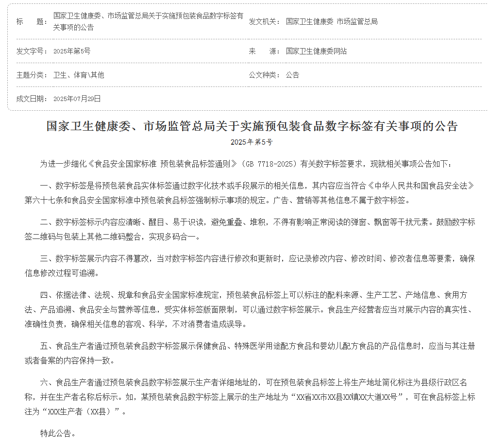 ●适应国际化需求:许多国家已推行数字标签,我国新规与国际接轨,方便进口食品企业使用。